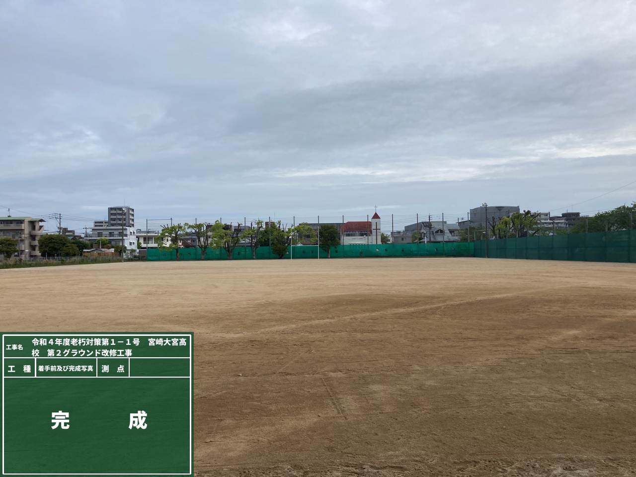 宮崎大宮高校第2グラウンド改修工事が完成しましたのでご報告致します。