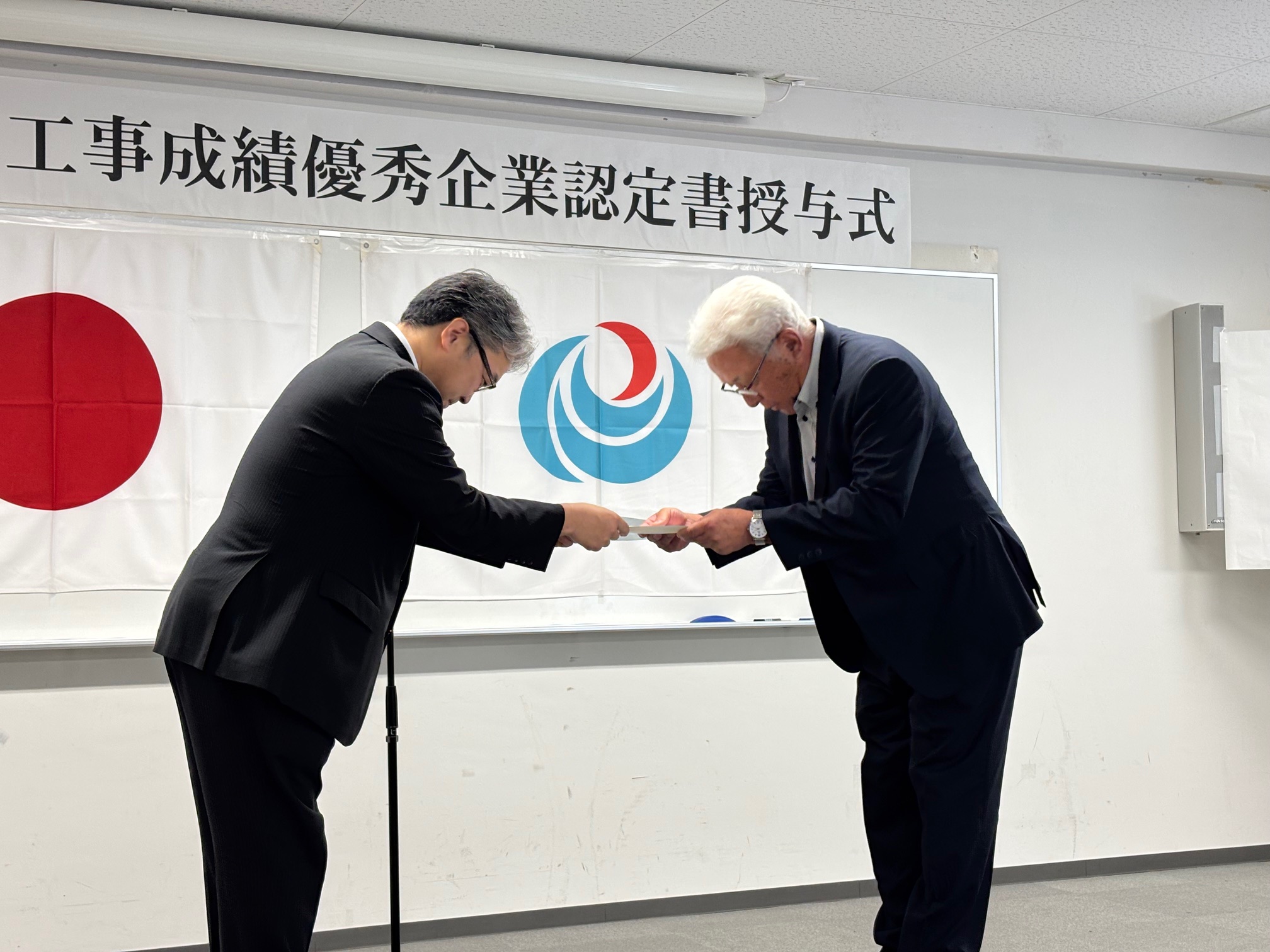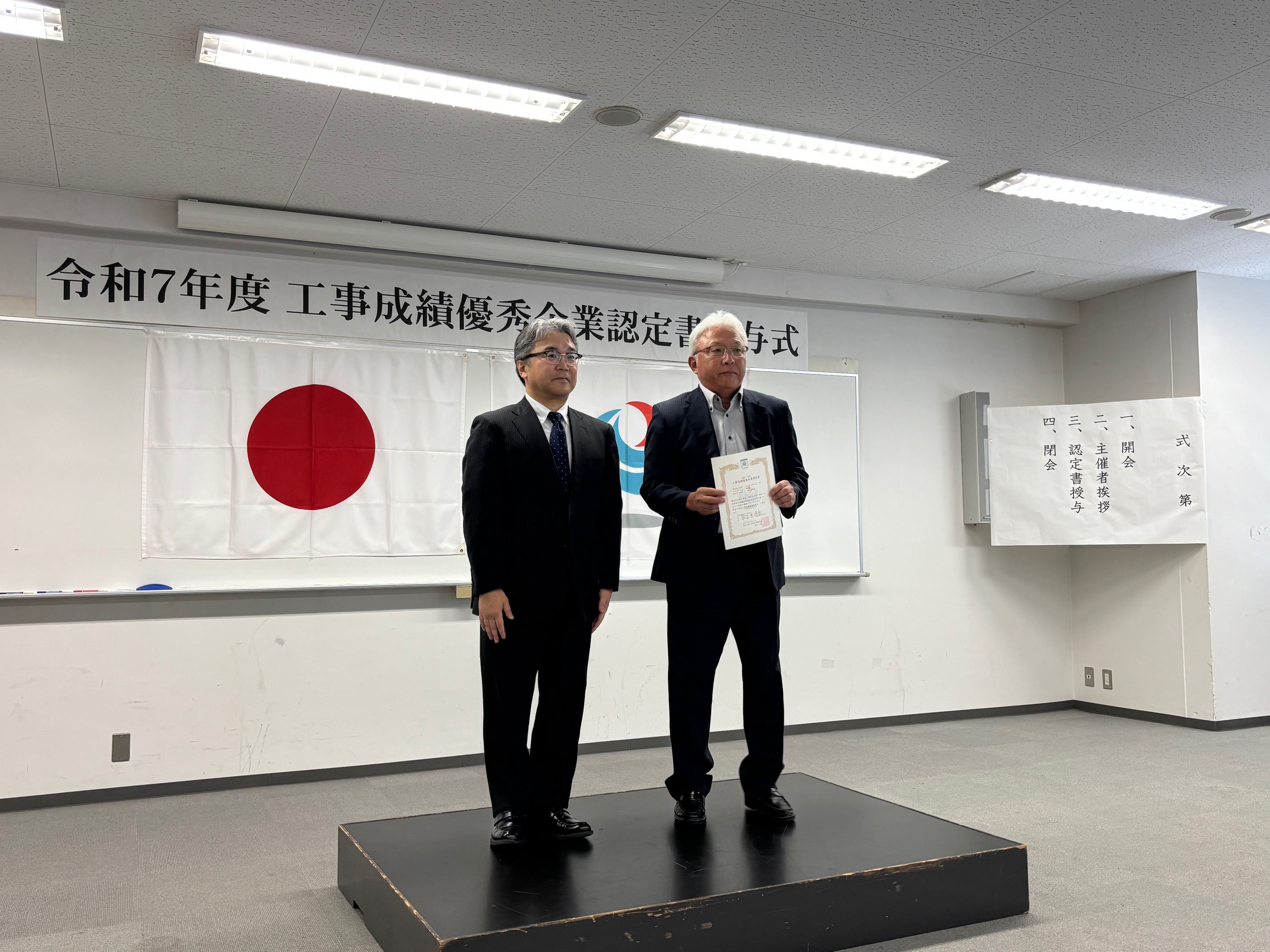令和7年7月23日に国土交通省九州地方整備局工事成績優秀企業認定書授与式が執り行われました。